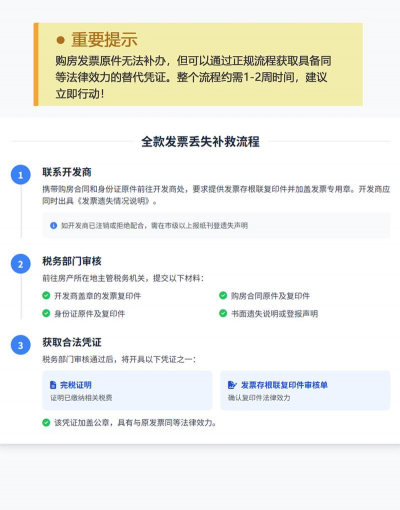 如果你房产证还没有拿到手,全款发票的丢失还会影响房产证的办理,让你的房产证取得之路烦不胜烦。