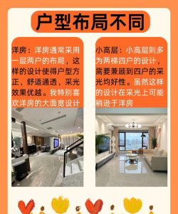 洋房建筑层数较高层少高度低,一般为6层左右的建筑层数。洋房一般都是一层两户的布局,充足的用地条件,保证了大面宽户型设计的实现。花园洋房价格是偏高的,且位置偏远,但是配套设施不好,而且物业管理费又贵,但是就因为它是洋房,所以外观比较漂亮,比小高层的好,容积率也低。