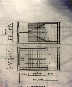 三、弹斜墨线:首先应求出梯段板底与楼梯梁交线的标高,求此标高需用到楼梯坡度和梯板厚度