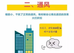 每一栋楼就像是自己家的墙面一样,墙与墙之间距离太近,干扰了正常的通风,有时候会让南北通透的效果大打折扣,一个良好的居住环境,不仅仅要保障的光照,还要具有良好的通风性能。如果楼间距过近的话,前楼往往会对后楼的正常通风造成遮挡,使后楼业主的通风受到影响。