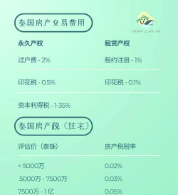 1、在泰国并没有房产税”,所以购买泰国的房产,只需要在过户的时候缴纳相关的几种过户税费(过户费、特种商业税、印花税、个人所得税)即可。