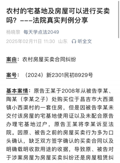 1、对于发生在农村集体经济组织成员之间的农村房屋买卖,如果查明无欺诈、显失公平情形存在,应当认定房屋买卖合同有效,驳回当事人要求退房退款的诉讼请求。