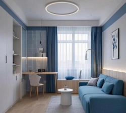 单身公寓由于空间比较小,所以选择多功能的家具是非常适合的。选择的家具尽量要小巧,实用,不占用多余空间,可灵活变换组合使用,并且可以同时收纳多样物品。例如带书架的电脑台、高脚单人床、折叠床等。