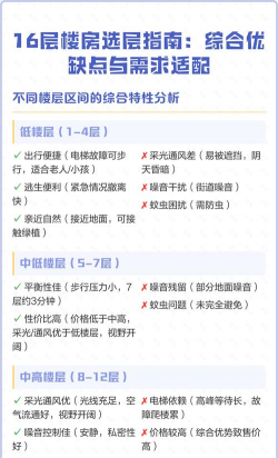 2、无论北方南方,顶层能不买就不买,因为夏天热冬天冷的可能性大,碰到工程质量不好还可能墙面漏水。可以看看你小区的园林景观怎么个布局,一般说来,如果阳台前有大树分布则可以买四-六层的,因为这个高度刚好是树冠顶部,从这个高度往外看效果会比较好,一片郁郁葱葱的树顶映衬远处的美景:)。