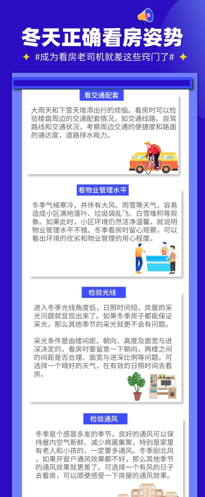 我买房的时候就特意选择在冬天,不仅能了解到园区的实际情况,更重要的是亲自感受采光、日照以及供暖。”一位购房的网友向小编讲述她的买房经:我当时还特意问了邻居的居住感受,并体验了一下屋内的供暖情况。要知道买房子不能只坐在售楼处听和看,一定要自己去真实感受。”