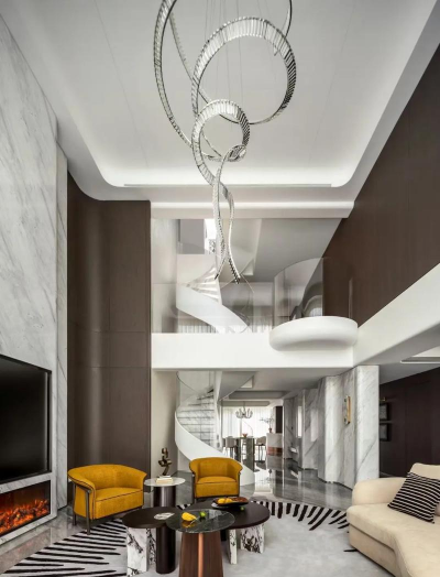 看相互各功能区间划分是否清晰流畅。一般来说,复式住宅由于上、下层自然间隔,基本上下层安排公共活动空间如客厅、客房、餐厅、厨房、卫生间等,上层则安排卧室、书房。
