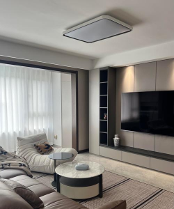 在硬装方面,我们要适当地加入黑色色块、黑色线条元素,比如轨道灯、踢脚线这类,在软装部分,可以局部增加一些黑色系的小家具,比如茶几、餐椅、柜子等。