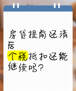 1、房贷提前还清了,那么就没有房贷利息支出。没有房贷利息支出,就不能再享受住房贷款利息专项附加扣除抵扣个税的优惠。