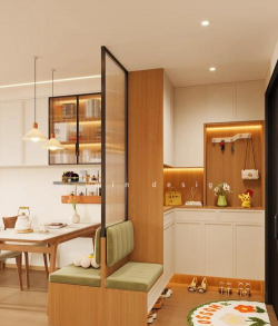 在许多家庭中,入户门通常设计有玄关,但若缺乏这一设计,我们可以考虑通过屏风或珠帘来进行空间的划分。屏风不仅具有良好的装饰效果,还能在一定程度上隔离外部空间,营造出一种私密的氛围。同时,珠帘以其轻盈的特性,能够保持空间的通透感,使得客厅与玄关之间的过渡显得更加自然和流畅。这种方法既经济又实用,适合大多数家庭的装修风格。