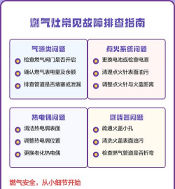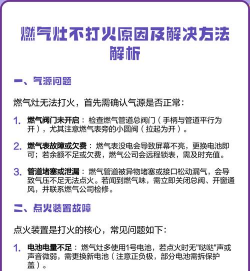 除了以上几点原因,还有可能是点火针或微动开关问题,电磁阀或自闭阀问题等。在使用燃气灶时,需要注意安全使用,保持通风,定期检查和维护,避免发生意外。