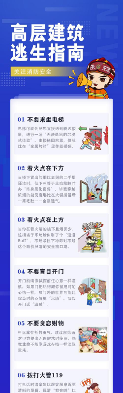 除了地震逃生,了解高楼的消防安全知识同样不可忽视。居民应熟悉所在楼层的逃生通道和疏散路线,以便在火灾等紧急情况下快速、安全地撤离。同时,了解火灾报警器的安装位置,确保其正常运行,及时报警以便消防部门能够迅速赶到。