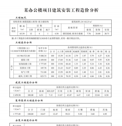 2. 单方造价:一般为1433元/m2,其中土建部分为1269元。