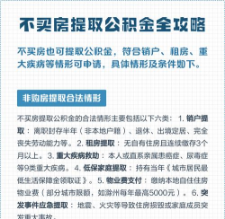 不买房的话也可以提取公积金,按照我国公积金的管理条例,再达到国家法定退休年龄,或者是已经办理了终止劳动关系,处于丧失劳动能力或者是要出境定居的职工,都可以申请提取住房公积金,此外如果自身处于租房的阶段,支出房租已经超出家庭月工资收入15%以上,也可以支取住房公积金用来付房租。住房公积金主要是国家给予的专项用于住房消费的个人储备金,因为不以现金的形式发放,所以当职工用于购房或者是大修自有住房、缴纳房租房贷时才可以申请,而且要做到专款专用,随着现在各项机制的逐渐完善,异地申请使用住房公积金也更加便捷,购房者可以向自己的单位或者是当地的住房公积金提出申请,在提交自己的个人材料申请表和用途证明后,一般会在一周左右办理成功。