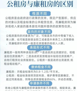 ①公租房和廉租房含义不同,公租房是无房大学生和住房困难户出租的住房。而廉租房是政府以租金补贴或实物配租的方式,向符合城镇居民低生活保障标准,且住房困难的家庭提供的住房。②申请对象不同,廉租房的申请对象,仅限于本市城镇低收入住房的困难家庭,公租房的申请对象不受区域和户籍方面的限制。③公租房和廉租房租赁年限不同,公租房租赁总年限不超过5年,廉租房租赁总年限则没有明确标准限制。