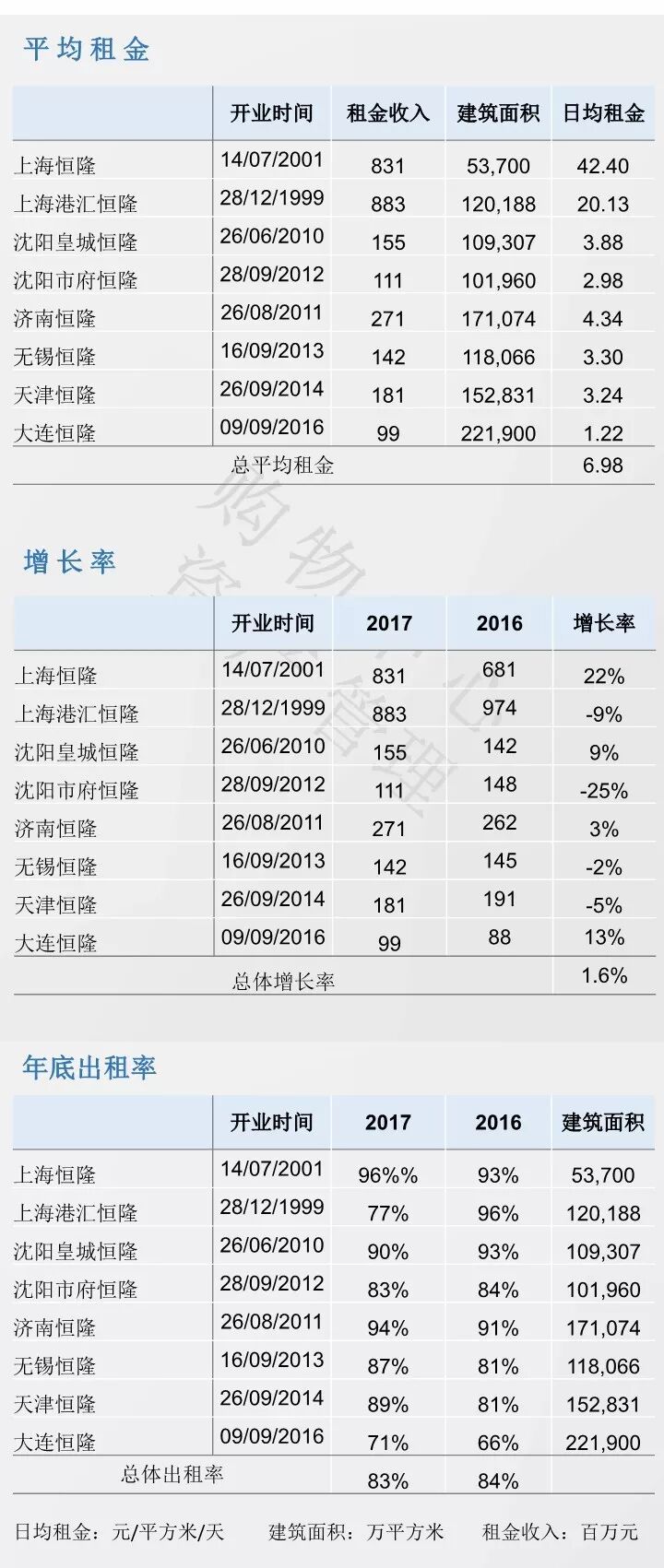注:港汇恒隆广场写字楼归属于恒隆集团,在恒隆地产年报中不体现