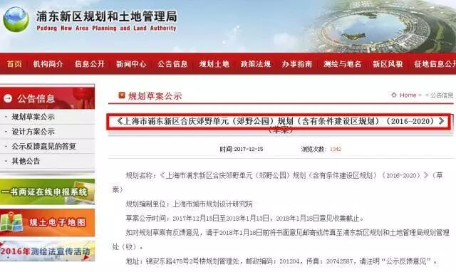 近日,合庆郊野公园的规划,已经在浦东新区规土局官网进行公示啦!
