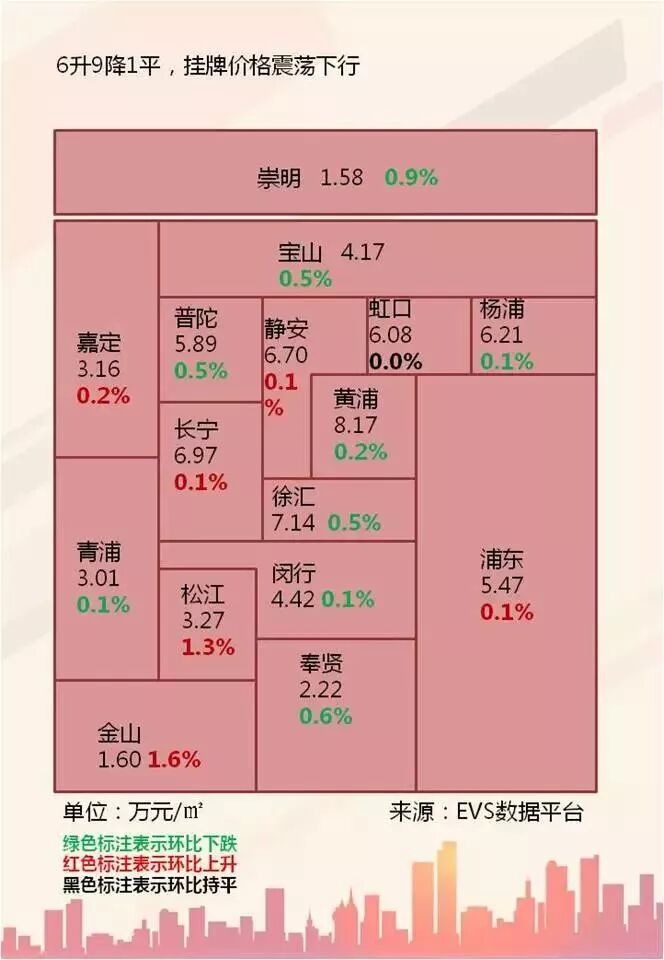 基于世联评估和世联EVS的房价数据,我们对上海市2017年12月份二手房房价及走势进行市场监测,12月上海存量住宅均价为5.17万元/㎡,环比下跌0.32%; 16个行政区里,6升9降1平,震荡下行趋势不变。