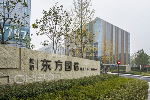 虹桥东方国信商务广场:上海虹桥东方国信商务广场项目坐落于虹桥临空经济园区11-1地块,占地约2.5万平方米,地上建筑面积约5.1万平方米,地下室建筑面积约2.2万平方米。是一个利用原有四层粮库改扩建为绿色一星级5A智能化甲级写字楼的项目。方案设计为加拿大B+H建筑师事务所,建筑设计为马建国际建筑设计顾问有限公司,投资方为上海东方国信实业有限公司。该项目由三座相同方形的写字楼呈“品”字型矩阵布局,空间方正有形规整大气,是企业总部设立的首选。项目践行着环保和绿色建筑的理念。据目前所知,将超过2万平方米的多层仓库改造成甲级写字楼的项目在上海是绝无仅有的一例。大量的资源再利用,也就是大量的建筑垃圾不再产生。而最大的回报也就是造就了绝版典藏的5.65米高的办公空间(原仓库层高)和超大幅的楼面承载力(800KG),完全可以满足LOFT办公布置和企业总部密集架资料库,信息化机房等楼面承重的要求