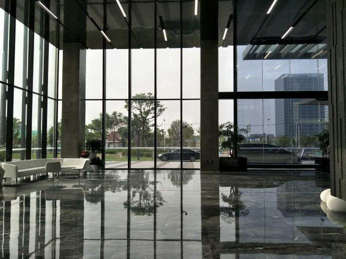 外立面采用三层中空LOW-E玻璃:节能、抗音、防紫外线。